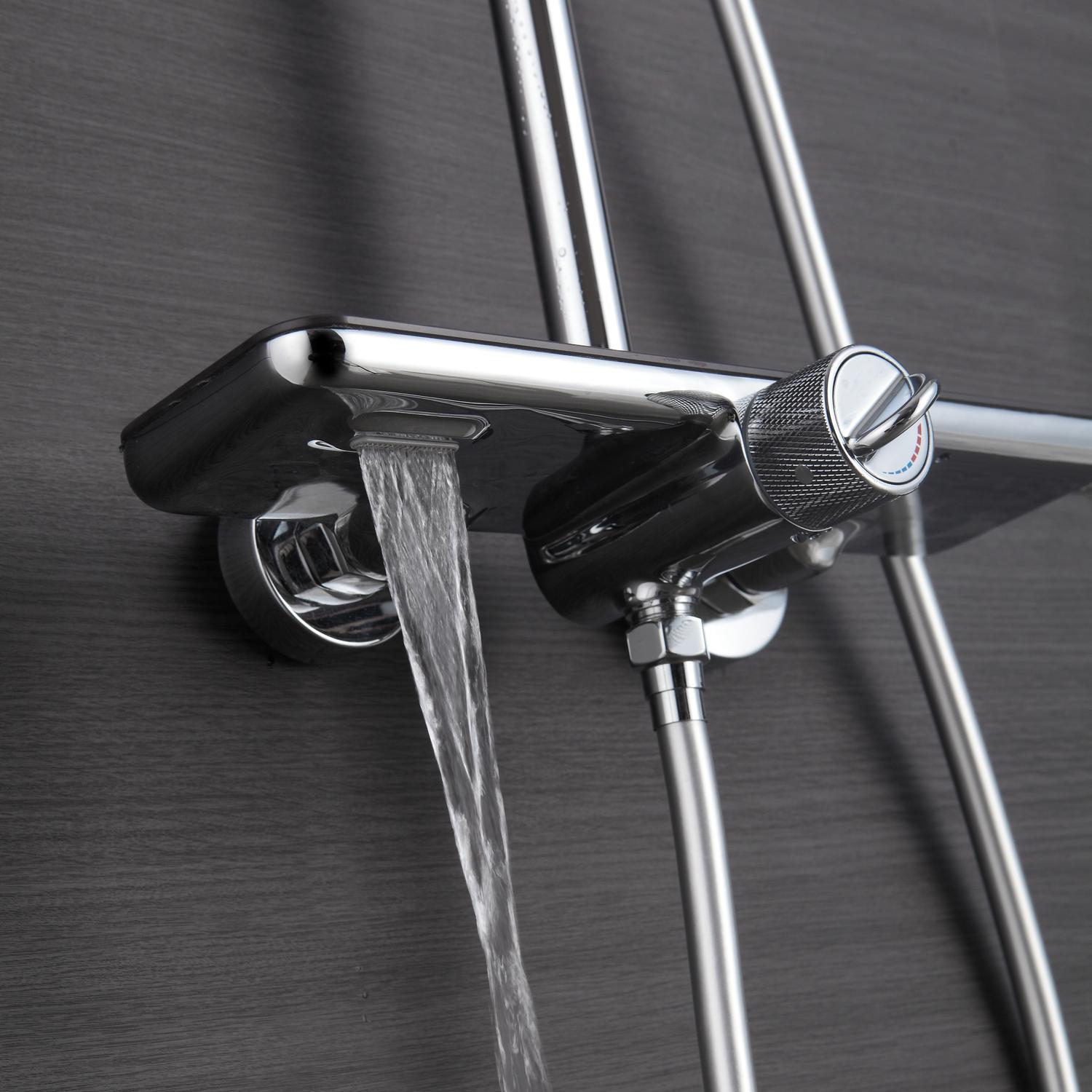 シャワー水栓 お風呂用セット ヘッド+ハンド 小物収納付 オシャレ 全4色
