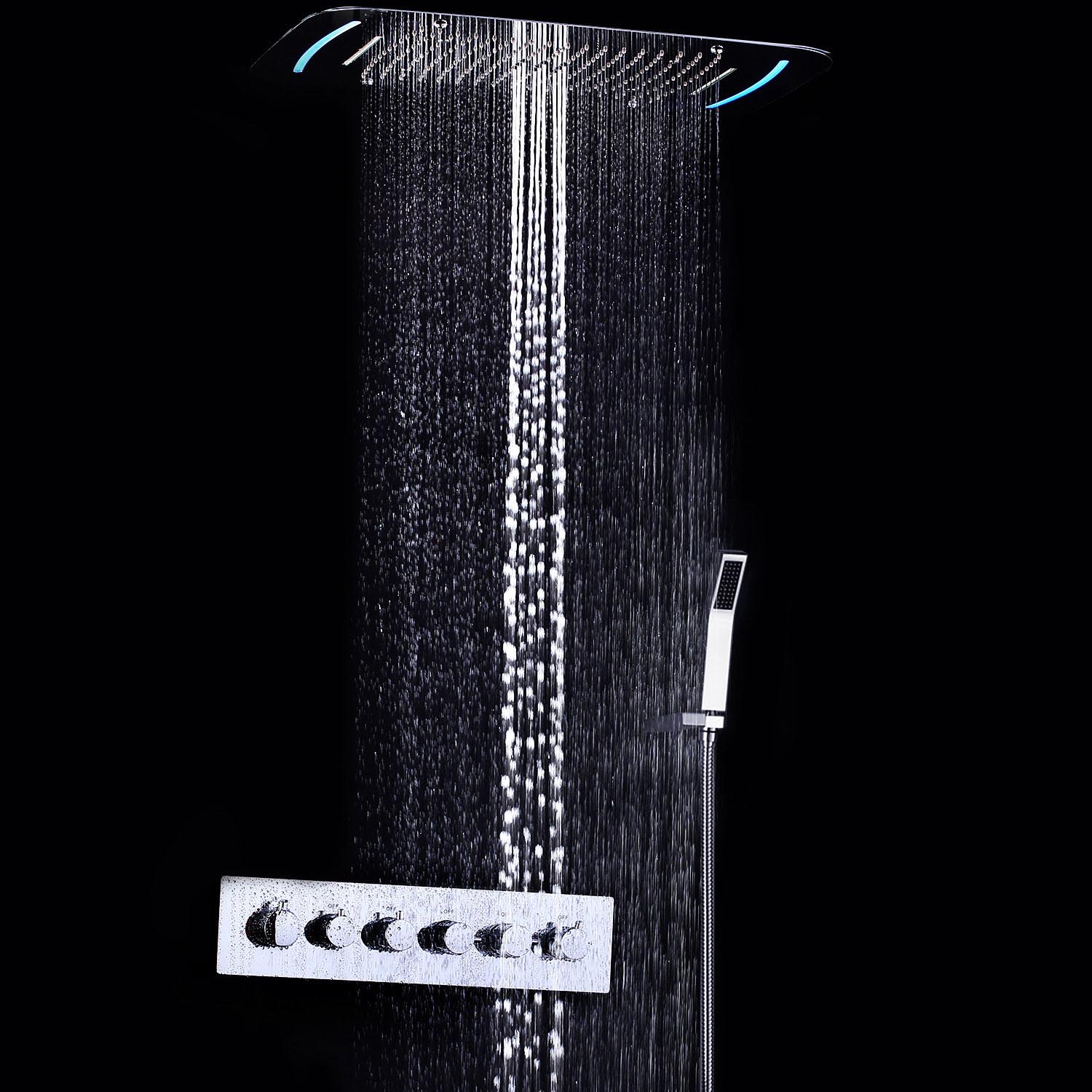 埋込形シャワー水栓 彩色LEDライト付 サーモスタット式混合栓 電源必須 多機能 多吐水式 銀